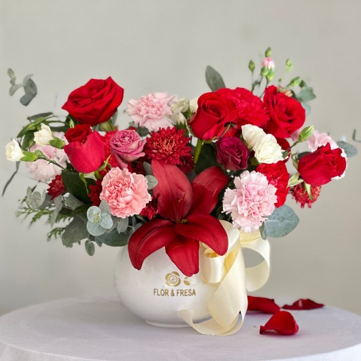 20 TALLOS ENTRE ROSAS + LISIANTHUS + CLAVELES + LILI Y MARGARITA