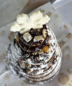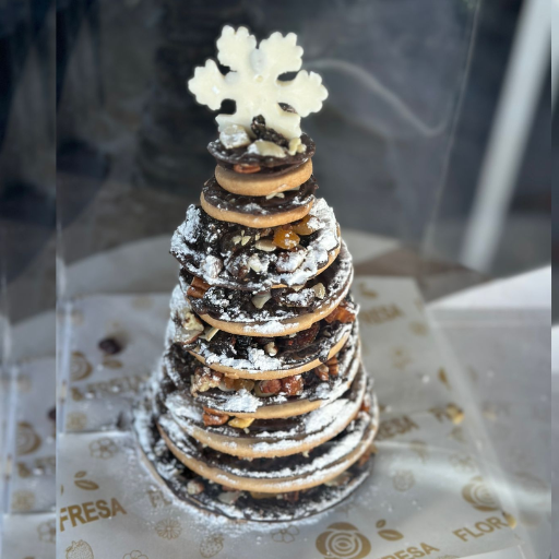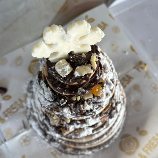 Regala magia comestible. Pino de temporada con toques de chocolate y nieve de azúcar.